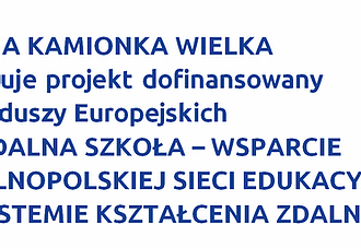 z Funduszy Europejskich pt. ZDALNA SZKOŁA – WSPARCIE OGÓLNOPOLSKIEJ SIECI EDUKACYJNEJ W SYSTEMIE KSZTAŁCENIA ZDALNEGO, którego plakat znajduje się tutaj. Celem projektu było zapewnienie możliwości zdalnej nauki uczniów szkół podstawowych Gminy Kamionka Wielka poprzez zakup sprzętu niezbędnego do uczestnictwa w zdalnym nauczaniu. Dofinansowanie projektu z UE to 69 993 zł.